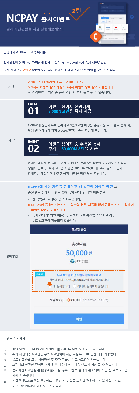 NCPAY x 신한카드로 5만N코인 이상 충전 시 보너스 N코인을 또 드려요!