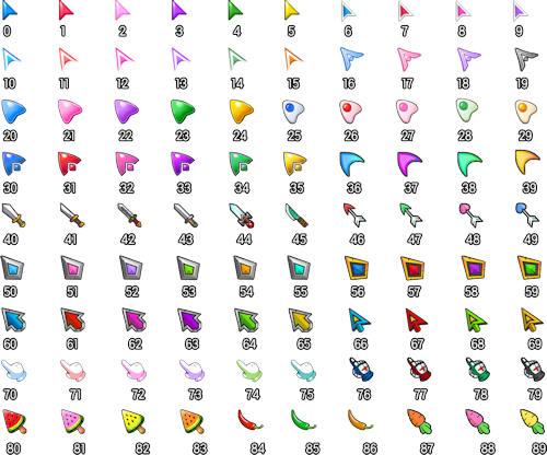 YoloMouse가 설치된 폴더내 Cursors\Default 폴더에 0~89번까지 90개의 커서 파일이 있습니다.